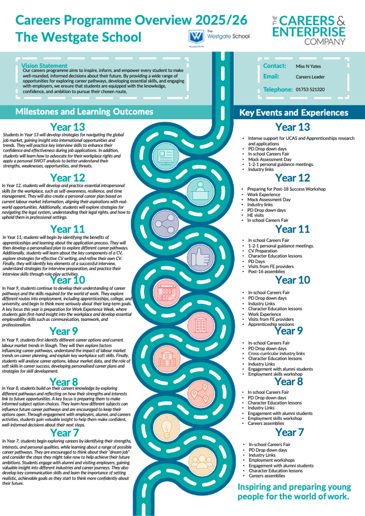 Careers Lead - Miss N Yates - NY@westgate.slough.sch.uk